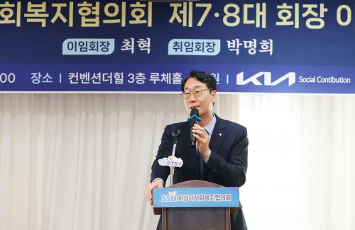 [½Åµ¿¾Æ¹æ¼Û=ÀÌÀçö±âÀÚ] Á¤¸í±Ù È­¼ºÆ¯·Ê½ÃÀåÀÌ 26ÀÏ ÄÁº¥¼Ç ´õÈú ·çüȦ¿¡¼­ ¿­¸° ¡®È­¼º½Ã »çȸº¹ÁöÇùÀÇȸÀå ÀÌ¡¤ÃëÀӽġ¯¿¡ Âü¼®Çß´Ù.