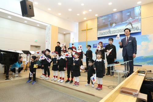 ¿ÀÀü 10½ÃºÎÅÍ ÁøÇàµÈ À̹ø Çà»ç¿¡´Â Á¤¸í±Ù ȼºÆ¯·Ê½ÃÀåÀÌ Âü¼®ÇØ Ãà»ç¸¦ ÀüÇß´Ù. Á¤ ½ÃÀåÀº ¡°µ¶¸³¿îµ¿ÀÇ »ê½ÇÀÎ ¼öÃ̱³È¸¿¡¼ 3.1ÀýÀ» ±â³äÇÏ°Ô µÇ¾î ¸Å¿ì ¶æ±í°Ô »ý°¢ÇÑ´Ù¡±¸ç, ¡°120³â ¿ª»ç¸¦ À̾î¿Â ±³È¸ÀÇ °¡Ä¡¸¦ ½Ã¹Îµé°ú ÇÔ²² ±â¸®°í, ¾ÕÀ¸·Îµµ ȼº½Ã°¡ ¿ª»ç¡¤¹®È º¸Á¸¿¡ ÃÖ¼±À» ´ÙÇϰڴ١±°í ¹àÇû´Ù.