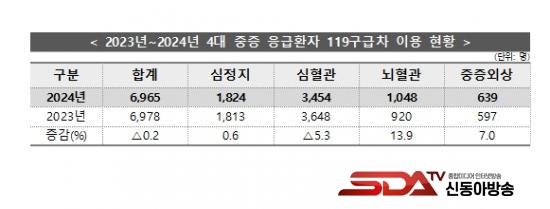 2023³âµµ ´ëºñ ÁÖ¿ä º¯È·Î ÃÑ À̼ÛȯÀÚ´Â 9,064¸í(7.6%) °¨¼ÒÇÏ¿´À¸³ª ³úÇ÷°ü ȯÀÚ 128¸í(13.9%), ÁßÁõ¿Ü»ó ȯÀÚ 42¸í(7%) »ó½ÂÇÏ¿© ÁßÁõ ÀÀ±ÞȯÀÚ¿¡ ´ëÇÑ ±¸±Þ¼ö¿ä°¡ Áõ°¡