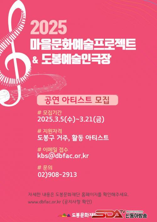[½Åµ¿¾Æ¹æ¼Û µµºÀ±¸=À̽ŵ¿±âÀÚ] µµºÀ±¸ µµºÀ¹®È­Àç´ÜÀÌ ¿À´Â 3¿ù 21ÀϱîÁö ¡®2025 ¸¶À»¹®È­¿¹¼úÇÁ·ÎÁ§Æ®‧µµºÀ¿¹¼úÀαØÀ塯 Âü¿© ¿¹¼ú°¡¸¦ ¸ðÁýÇÑ´Ù.