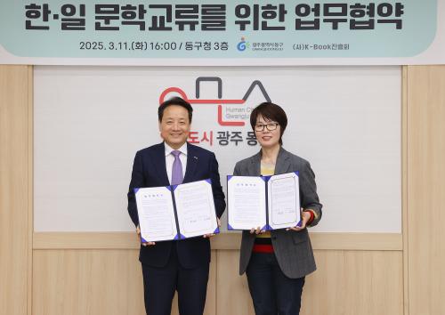 [½Åµ¿¾Æ¹æ¼Û=±èÀçÂù±âÀÚ] ±¤ÁÖ µ¿±¸(ûÀå ÀÓÅÃ)´Â Áö³­ 11ÀÏ ±¸Ã» Á¢°ß½Ç¿¡¼­ Çѱ¹°ú ÀϺ» ¾ç±¹ ¹®ÇÐ ±³·ùÀÇ ±â¹ÝÀ» ´ÙÁö±â À§ÇØ (»ç)K-BOOKÁøÈïȸ(´ëÇ¥ ³ªÄ«ÀÚ¿Í ÄÉÀÌ)¿Í ¾÷¹«Çù¾àÀ» ü°áÇß´Ù°í ¹àÇû´Ù.