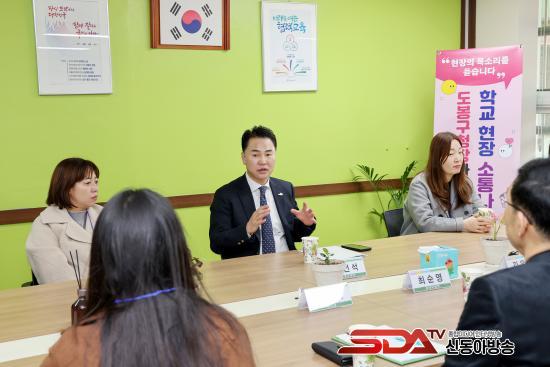 ¿À¾ð¼® µµºÀ±¸Ã»ÀåÀÌ Áö³­ 11ÀÏ ´©¿øÃʵîÇб³¿¡¼­ Çкθð, Çб³ °ü°èÀÚ µî°ú Áö¿ª ±³À°Çö¾È¿¡ ´ëÇØ ´ëÈ­¸¦ ³ª´©°í ÀÖ´Ù(2025. 3. 11. ´©¿øÃʵîÇб³)