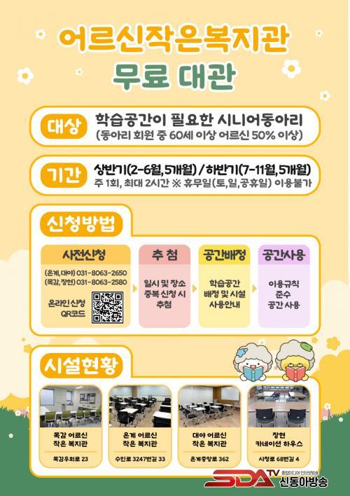 ¹«·á ´ë°üÀ» ¿øÇÏ´Â ¾î¸£½Å µ¿¾Æ¸®´Â ½ÃÈï½Ã °øÀ¯Ç÷§Æû ½Ã¼Ò(https://share.siheung.go.kr)¿¡¼ ¿Â¶óÀÎÀ¸·Î ½ÅûÇϰųª, ½ÃÈï½Ã ³ëÀÎÁ¾ÇÕº¹Áö°ü(031-8063-2650)À¸·Î ½ÅûÇÏ¸é µÈ´Ù.
