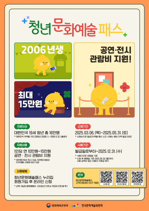 °¡ÀÔ ¹× ½ÅûÀº û³â¹®È¿¹¼úÆÐ½º ´©¸®Áý(https://youthculturepass.or.kr/)¿¡¼ ÇÏ¸é µÇ°í Çù·Â ¿¹¸Åó(¿¹½º24, ÀÎÅÍÆÄÅ©)¿¡¼ »ç¿ëÇÒ ¼ö ÀÖ´Ù.