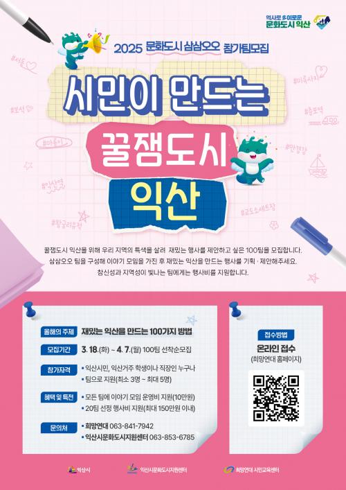 ¿ÃÇØ´Â 'Àç¹ÌÀÖ´Â ÀÍ»êÀ» ¸¸µå´Â 100°¡Áö ¹æ¹ý'À» ÁÖÁ¦·Î Áö¿ªÀÇ Æ¯»öÀ» »ì¸° Çà»ç ¸¸µé±â°¡ ÁøÇàµÈ´Ù. Àͻ꿡 °ÅÁÖÇÏ´Â ½Ã¹Î¡¤Çлý¡¤Á÷ÀåÀÎÀº ´©±¸³ª 3¸í¿¡¼ 5¸í±îÁö ÆÀÀ» ±¸¼ºÇؼ Âü°¡ÇÒ ¼ö ÀÖ´Ù.