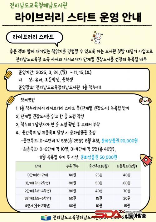 [½Åµ¿¾Æ¹æ¼Û Àü³²Çس²=À̽ŵ¿±âÀÚ] Àü¶ó³²µµ±³À°Ã»Çس²µµ¼­°ü¿¡¼­´Â 2025³â 3¿ù 24ÀϺÎÅÍ 11¿ù 15ÀϱîÁö ¶óÀ̺귯¸® ½ºÅ¸Æ® ÇÁ·Î±×·¥À» ¿î¿µÇÑ´Ù.
