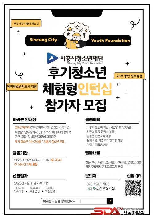 ¼·ù ¸¶°¨Àº 4¿ù 11ÀϱîÁöÀ̸ç, ½Åû°ú °ü·ÃÇØ ÀÚ¼¼ÇÑ »çÇ×Àº ½ÃÈï½Ãû¼Ò³âÀç´Ü ´É°îû¼Ò³â¹®ÈÀÇÁý(070-4257-7893)À¸·Î ¹®ÀÇÇÏ¸é µÈ´Ù.