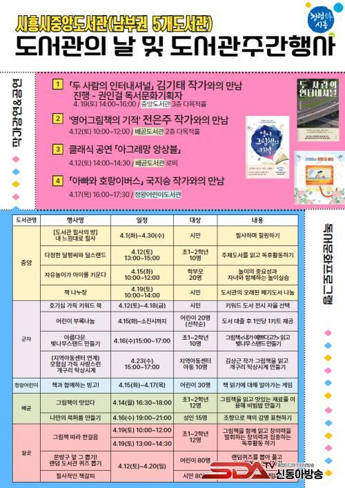 ½ÃÈï½ÃÁß¾Óµµ¼°üÀº À̹ø µµ¼°üÀÇ ³¯ ¹× µµ¼°üÁÖ°£ Çà»ç¸¦ ÅëÇØ ½Ã¹Îµé¿¡°Ô Ã¥°ú ¹®ÈÀÇ Áñ°Å¿òÀ» Á¦°øÇϰí, Áö¿ª ÁֹεéÀÌ ´Ù¾çÇÑ µ¶¼¹®È ÇÁ·Î±×·¥À» °æÇèÇÒ ¼ö ÀÖµµ·Ï ÇÒ ¿¹Á¤ÀÌ´Ù.