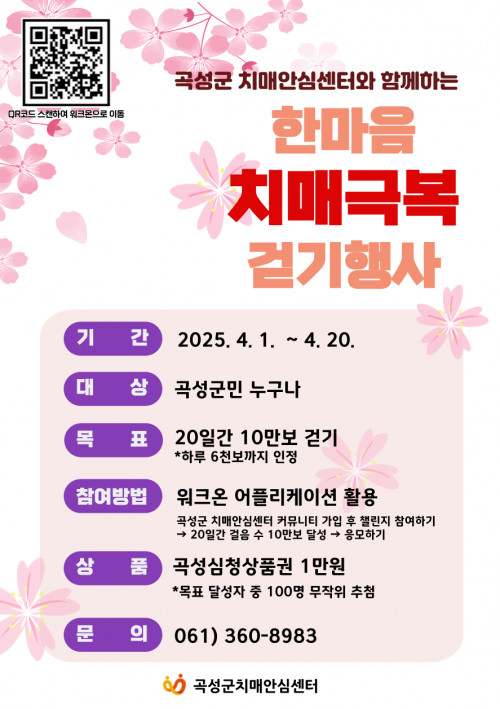 Âü¿©¸¦ ¿øÇÏ´Â ÁÖ¹ÎÀº ¸ð¹ÙÀÏ ¾ÖÇø®ÄÉÀÌ¼Ç ¡®¿öÅ©¿Â¡¯À» ´Ù¿î·ÎµåÇÑ µÚ, ¡®°î¼º±ºÄ¡¸Å¾È½É¼¾ÅÍ¡¯ Ä¿¹Â´ÏƼ¿¡ °¡ÀÔÇØ 縰Áö¿¡ Âü¿©ÇÏ¸é µÈ´Ù. ¸ñÇ¥ °ÉÀ½ ¼ö´Â 20Àϰ£ 10¸¸ º¸·Î, ÇÏ·ç ÃÖ´ë 6,000º¸±îÁö ÀÎÁ¤µÈ´Ù. ÀÌ´Â ¹«¸®ÇÑ ¿îµ¿À» ¹æÁöÇϸ鼵µ Áö¼ÓÀûÀÎ °È±â ½ÇõÀ» À¯µµÇϱâ À§ÇÔÀÌ´Ù. ±âÇÑ ³» ¸ñÇ¥¸¦ ´Þ¼ºÇÑ Âü°¡ÀÚ Áß 100¸íÀ» ¹«ÀÛÀ§·Î ÃßÃ·ÇØ ¸ð¹ÙÀÏ °î¼º½Éû»óǰ±Ç 1¸¸ ¿ø±ÇÀ» Áö±ÞÇÑ´Ù.