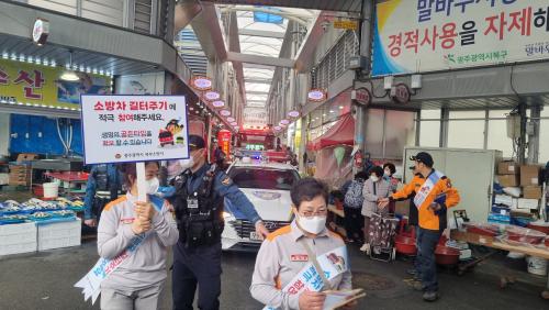À̳¯ ÈÆ·ÃÀº ÀüÅë½ÃÀå ÈÀç ¿¹¹æ ¹× Àç³ ¹ß»ý½Ã ¼Ò¹æÅë·Î È®º¸¿¡ Âü¿©ÇÏ´Â ºÐÀ§±â¸¦ Á¶¼ºÇϱâ À§ÇØ ¼Ò¹æ°ø¹«¿ø, °ü°è±â°ü(ºÏ±¸Ã», ºÏºÎ°æÂû¼), ÀÇ¿ë¼Ò¹æ´ë¿ø µî Â÷·® 4´ë ¹× Àοø 30¿©¸íÀÌ Âü¿©ÇÑ °¡¿îµ¥ ¸»¹Ù¿ì½ÃÀå ÀÏ¿ø¿¡¼ ÁøÇàµÆ´Ù.