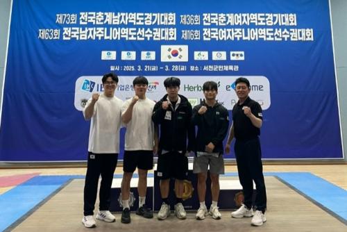 ¡¸Á¦73ȸ Àü±¹Ãá°è³²ÀÚ¿ªµµ°æ±â´ëȸ¡¹¿¡¼ À¯µ¿ÁÖ ¼±¼ö´Â ³²ÀÚ 96kg±Þ¿¡ ÃâÀüÇØ ¿ë»ó 202kg, Àλó 156kg, ÇÕ°è 358kgÀ» µé¾î ¿Ã¸®¸ç ±Ý¸Þ´Þ 3°³·Î 3°ü¿ÕÀ» Â÷ÁöÇß°í, ÃÖÁöÈ£ ¼±¼ö´Â ³²ÀÚ 81kg±Þ¿¡ ÃâÀüÇÏ¿© ¿ë»ó 166kg, Àλó 133kg, ÇÕ°è 299kgÀ» µé¾î¿Ã·Á µ¿¸Þ´Þ 3°³¸¦ ȹµæÇß´Ù.