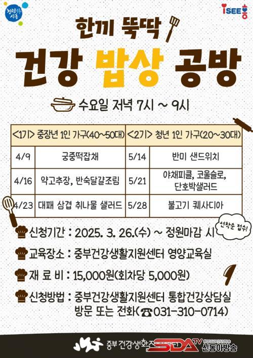 ¡®ÇÑ ³¢ ¶Òµü, °Ç° ¹ä»ó °ø¹æ¡¯Àº 4¿ùºÎÅÍ 7¿ù±îÁö ¸ÅÁÖ ¼ö¿äÀÏ Àú³á 7½ÃºÎÅÍ 2½Ã°£ µ¿¾È Áߺΰǰ»ýȰÁö¿ø¼¾ÅÍ 3Ãþ ¿µ¾ç±³À°½Ç¿¡¼ ÁøÇàµÇ¸ç, ±â¼öº°·Î 3ȸ¾¿ ÃÑ 5°³ ±â¼ö°¡ ¿î¿µµÈ´Ù.