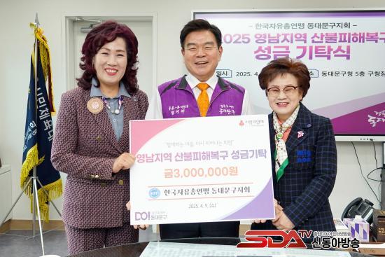 Çѱ¹ÀÚÀ¯ÃÑ¿¬¸Í µ¿´ë¹®±¸Áöȸ ¿µ³²Áö¿ª »êºÒ ÇÇÇØ º¹±¸ Áö¿ø ¼º±Ý Àü´Þ½Ä ±â³äÃÔ¿µ(Á·κÎÅÍ ÀÌ¿ÁºÐ »ç¹«±¹Àå, ÀÌÇÊÇü µ¿´ë¹®±¸Ã»Àå, Â÷º¹ÀÚ ¿©¼ºÈ¸Àå)