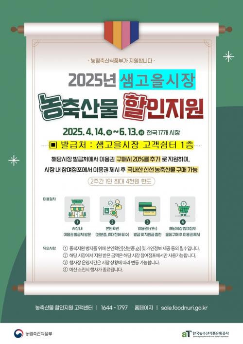 ´Ù¸¸, °¢ ȸÂ÷º°·Î 1Àδç ÃÖ´ë 4000¿ø±îÁö Áö¿øµÇ¸ç, Çà»ç ´ë»ó ǰ¸ñÀº ±¹³»»ê ½Å¼± ³óÃà»ê¹°¿¡ ÇÑÇÑ´Ù. ¼öÀÔ»êÀ̳ª 2Â÷ °¡°ø ³óÃà»ê¹°(Âü±â¸§, ¾ç³äÀ°, µÎºÎ, ¹Ì¿ª, ººÀ½±ú µî)Àº À̹ø Çà»ç¿¡¼ Á¦¿ÜµÈ´Ù.