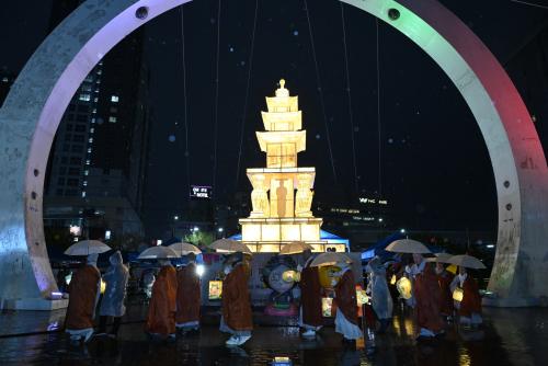 ¿ì¼± ÃàÁ¦ ÁÖ¿ä Àå¼ÒÀÎ ±¤ÁÖ°ø¿ø ¿øÇü ±¤Àå¿¡´Â È­¾ö»ç 4»çÀÚ 3Ãþ ¼®Å¾À» ÀçÇöÇÑ ºÀÃàžÀÌ µé¾î¼¹´Ù. ¹ã¿¡µµ ¾Æ¸§´Ù¿î ÀÚŸ¦ »Ë³»µµ·Ï ºÀÃàž ÁÖº¯¿¡ °æ°ü Á¶¸íµµ ¸¶·ÃÇß´Ù.