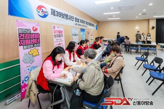 À̹ø Çà»ç´Â 39º¸º´»ç´ÜÀÇ 70Áֳ⠱â³ä°ú ÇԾȺδë ÀÌÀü 10ÁÖ³âÀ» ±â³äÇϱâ À§ÇØ Áö³­ 9~10ÀÏ 2Àϰ£ ÃßÁøµÆ´Ù. 39º¸º´»ç´ÜÀº ±ºÀǰü°ú Àǹ« ¿ä¿ø µî 20¿© ¸íÀÇ ÀÇ·áÁö¿øÆÀÀ» ±¸¼ºÇØ ³»°ú¡¤Á¤Çü¿Ü°ú¡¤Ä¡°ú µî ºÐ¾ßº°·Î ³ª´² 170¸íÀÇ ±ººÏ¸é¹Î¿¡°Ô °Ç°­ °ËÁø°ú ¹°¸®Ä¡·á, ½ºÆ®·¹½º°Ë»ç, ü¼ººÐ ºÐ¼® µî ÀÇ·áÁö¿øÀº ¹°·Ð °Åµ¿ÀÌ ¾î·Á¿î ³ë¾àÀÚ¿Í ±³ÅëÀÌ ºÒÆíÇÑ ÁֹεéÀ» À§ÇØ ¼ö¼Û¹ö½º¸¦ ¿î¿ëÇØ ÀÇ·áÁö¿øÀ» Á» ´õ ¼ö¿ùÇÏ°Ô ¹ÞÀ» ¼ö ÀÖµµ·Ï Çß´Ù.