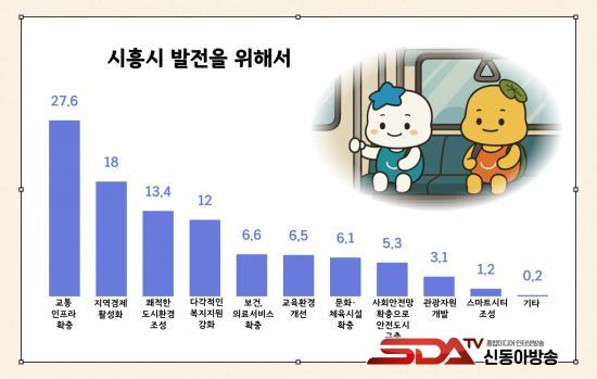 ½ÃÈï½Ã ¹ßÀüÀ» À§ÇÑ ÃÖ¿ì¼± °úÁ¦·Î´Â ¡®±³Åë ÀÎÇÁ¶ó È®Ãæ¡¯(27.6%)ÀÌ ²ÅÇû´Ù. ÀÌ¿¡ ½Ã´Â ¼Çؼ± ¿¬Àå, ½Å¾È»ê¼±, °æ°¼± µî ±¤¿ªÃ¶µµ °³ÅëÀ» ÅëÇØ ½Ã¹Î ±³ÅëÆíÀÇ ÁõÁø°ú µµ½Ã ±ÕÇü ¹ßÀü¿¡ ¹ÚÂ÷¸¦ °¡Çϰí ÀÖ´Ù. ¾Æ¿ï·¯ Áö¿ª ³» ´ëÁß±³Åë ü°è °³¼±À» º´Çà ÃßÁøÇØ ±³Åë ºÒÆí ÇØ¼Ò¿¡µµ ¼Óµµ¸¦ ³¾ °èȹÀÌ´Ù.