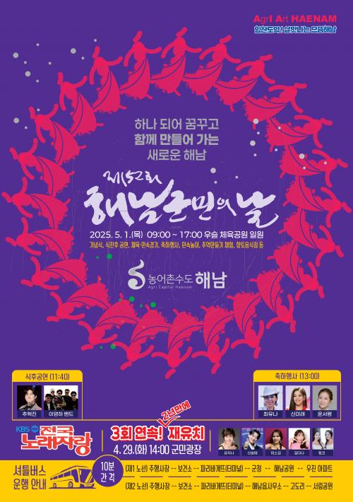 ÇØ³²±º¹ÎÀÇ ³¯À» ±â³äÇØ 4¿ù 29ÀÏ¿¡´Â KBSÀü±¹³ë·¡ÀÚ¶ûÀÌ ±º¹Î±¤Àå¿¡¼ ¿¸°´Ù. ½Ã°£Àº ¿ÀÈÄ 2½ÃºÎÅÍÀ̸ç, ´©±¸³ª °ü¶÷ °¡´ÉÇÏ´Ù.