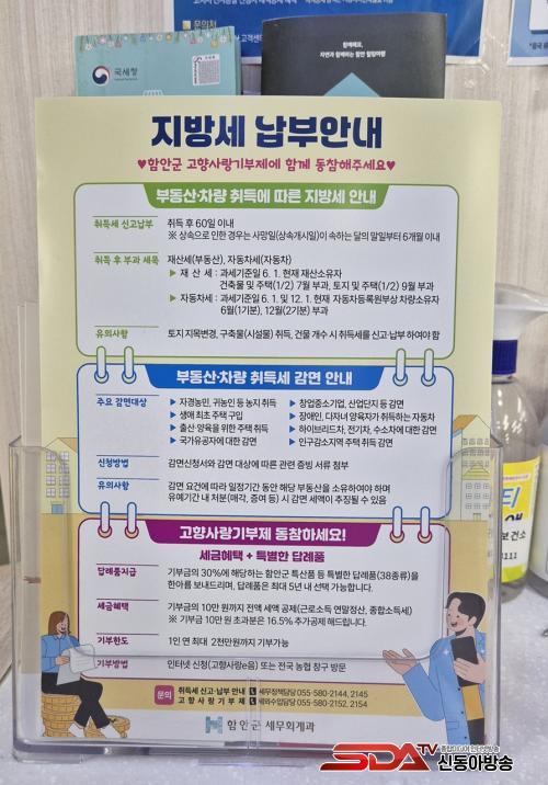 [½Åµ¿¾Æ¹æ¼Û °æ³²ÇÔ¾È=À̽ŵ¿±âÀÚ] ÇԾȱºÀº °ü¿Ü ³³¼¼ÀÚ Áö¹æ¼¼ ¾È³»¸¦ ÅëÇÑ °íÇâ»ç¶û±âºÎÁ¦ È«º¸¸¦ À§ÇØ ºÎµ¿»ê ÃëµæÀÚ ¹× °¨¸éÀÚ¿¡°Ô ¹èºÎÇÒ Áö¹æ¼¼ ½Å°í³³ºÎ ¾È³»¹®À» Á¦ÀÛÇß´Ù.