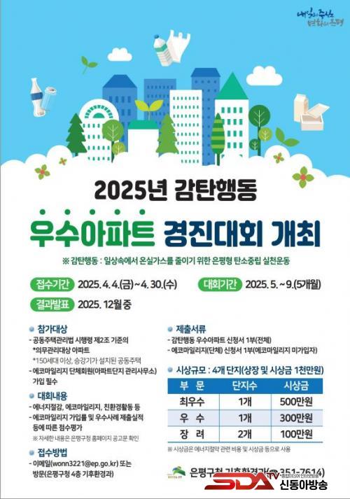 [½Åµ¿¾Æ¹æ¼Û ÀºÆò±¸=À̽ŵ¿±âÀÚ] ¼­¿ï ÀºÆò±¸´Â ÁֹεéÀÇ ¿¡³ÊÁö Àý¾à°ú ģȯ°æ ½ÇõÀ» Àå·ÁÇϱâ À§ÇØ ¡®2025³â °¨ÅºÇൿ ¿ì¼ö¾ÆÆÄÆ® °æÁø´ëȸ¡¯¸¦ °³ÃÖÇÏ°í ¿À´Â 30ÀϱîÁö ½Åû¹Þ´Â´Ù°í ¹àÇû´Ù.