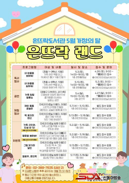 [½Åµ¿¾Æ¹æ¼Û ÀºÆò±¸=À̽ŵ¿±âÀÚ] ¼­¿ï ÀºÆò±¸´Â ±¸¸³ Àº¶ß¶ôµµ¼­°ü¿¡¼­ 5¿ù °¡Á¤ÀÇ ´ÞÀ» ¸Â¾Æ ¡®Àº¶ß¶ô ·£µå¡¯ Çà»ç¸¦ ¿î¿µÇÑ´Ù°í ¹àÇû´Ù.