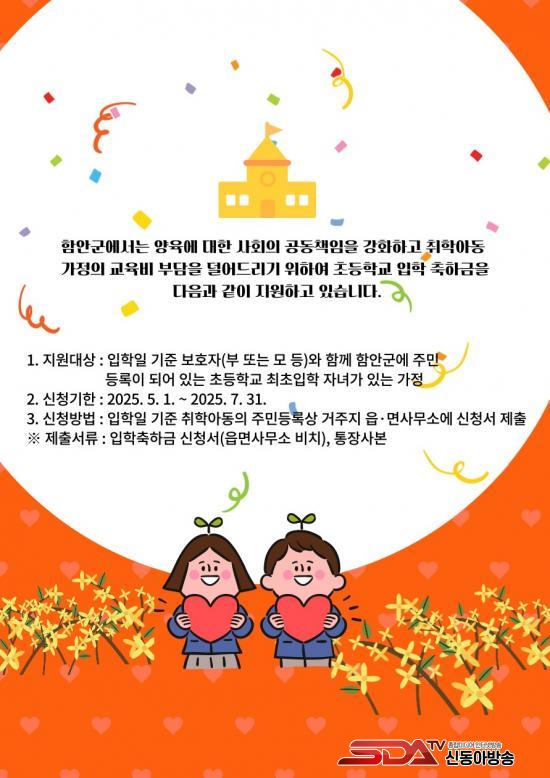 ±×µ¿¾È µÑ° ÀÚ³à ÀÌ»ó¿¡ ÇÑÇØ Áö±ÞÇÏ´ø ÃʵîÇб³ ÀÔÇÐÃàÇϱÝÀ» ¿ÃÇØºÎÅÍ ¸ðµç ÃÊµî ½ÅÀÔ»ý °¡Á¤À¸·Î È®´ëÇÑ´Ù. Áö¿ø ´ë»óÀº º¸È£ÀÚ¿Í ÀÚ³à ¸ðµÎ°¡ ÀÔÇÐÀÏ ±âÁØÀ¸·Î ÇԾȱº¿¡ Áֹεî·ÏÀÌ µÇ¾î ÀÖ¾î¾ß Çϸç, ¼Òµæ ¼öÁذú °ü°è¾øÀÌ µ¿ÀÏÇÏ°Ô ¾Æµ¿ 1Àδç 20¸¸ ¿øÀÇ Çö±ÝÀÌ Áö±ÞµÇ¸ç ½ÅûÀº º¸È£ÀÚ(ºÎ¸ð, Ä£±ÇÀÚ, ÈİßÀÎ µî)¸¸ °¡´ÉÇÏ´Ù.