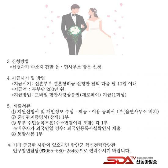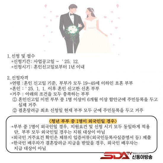 ¡®2025³â ½ÅÈ¥ºÎºÎ °áÈ¥Àå·Á±Ý Áö¿ø»ç¾÷¡¯Àº û³â¼¼´ëÀÇ °áÈ¥ Ãʱ⠰æÁ¦Àû ºÎ´ãÀ» ´ú°í Áö¿ª ³» ¾ÈÁ¤ÀûÀÎ »ýȰ ±â¹ÝÀ» ¸¶·ÃÇϵµ·Ï Áö¿øÇϸç, ºÎºÎ´ç 200¸¸ ¿ø »ó´çÀÇ ¸ð¹ÙÀÏ ÇԾȻç¶û»óǰ±ÇÀ» Áö±ÞÇÑ´Ù. ½Åû ±â°£Àº È¥ÀνŰíÀϷκÎÅÍ 1³â À̳» °¡´ÉÇϸç, Áö¿ø ´ë»óÀº 2025³â 1¿ù 1ÀÏ ÀÌÈÄ È¥ÀνŰí ÇÑ ÃÊÈ¥ ºÎºÎ·Î È¥ÀνŰíÀÏ ±âÁØ ¸¸19¼¼~49¼¼ ÀÌÇÏ ÃÊÈ¥ ºÎºÎÀ̸ç È¥ÀνŰíÀÏ ÀÌÀü ºÎºÎ Áß 1¸í ÀÌ»óÀÌ 6°³¿ù ÀÌ»ó ÇԾȱº¿¡ Áֹεî·ÏÀ» µÎ°í ½ÇÁ¦ °ÅÁÖÇϰí ÀÖ¾î¾ß Çϸç, °áÈ¥Àå·Á±Ý ½ÅûÀÏ ±âÁØ ºÎºÎ ¸ðµÎ ±º¿¡ Áֹεî·ÏÀÌ µÇ¾î ÀÖ´Â ºÎºÎÀÌ´Ù.