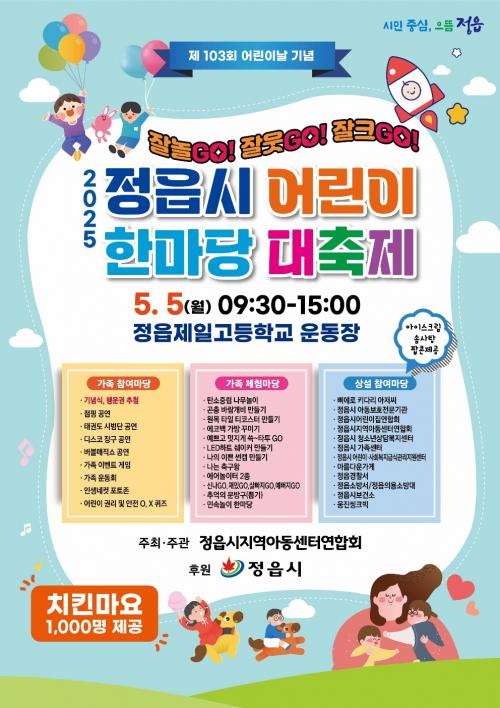 Á¤À¾½ÃÁö¿ª¾Æµ¿¼¾ÅÍ¿¬ÇÕȸ(ȸÀå ¹ÚÀÚÈñ)°¡ ÁÖ°üÇϰí Á¤À¾½Ã°¡ ÈÄ¿øÇÏ´Â À̹ø Çà»ç´Â 'Àß ³îGO!, Àß ¿ôGO!, Àß Å©GO!'¶ó´Â ½Å³ª´Â ÁÖÁ¦ ¾Æ·¡, ¾î¸°À̵鿡°Ô ÇູÇÑ ÇϷ縦 ¼±¹°ÇÒ ¿¹Á¤ÀÌ´Ù. ¿ìõ ½Ã¿¡´Â Á¤À¾Ã¼À°°ü¿¡¼ ÁøÇàµÈ´Ù.