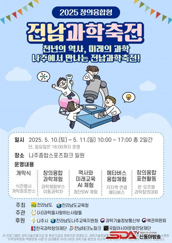 ¿ÃÇØ·Î 27ȸ¸¦ ¸ÂÀÌÇÏ´Â Àü³²°úÇÐÃàÀüÀº ¡®Ãµ³âÀÇ ¿ª»ç, ¹Ì·¡ÀÇ °úÇС¯À» ÁÖÁ¦·Î ¿¸®¸ç, Àü¶ó³²µµ ÃÊµî °úÇб³»ç ´ÜüÀÎ ¡®°úÇÐÀ»»ç¶ûÇϴ»ç¶÷µé¡¯ÀÌ ÁÖ°üÇÑ´Ù. À̹ø ÃàÀü¿¡´Â °úÇÐÀÇ ´ëÁßÈ¿Í 4Â÷ »ê¾÷Çõ¸í ½Ã´ë¿¡ ¹ß¸ÂÃç ÇлýµéÀÌ Áñ±æ ¼ö ÀÖ´Â 110¿© °³ÀÇ ÇÁ·Î±×·¥ÀÌ ´Ùä·Ó°Ô ¸¶·ÃµÈ´Ù.