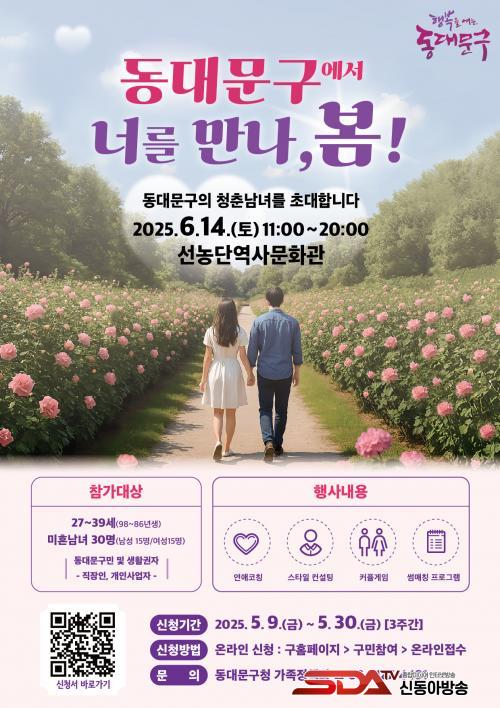 ¸ðÁý ÀοøÀº ³²³à °¢ 15¸í¾¿ ÃÑ 30¸íÀ̸ç, Âü°¡ ´ë»óÀº µ¿´ë¹®±¸ °ÅÁÖÀÚ ¶Ç´Â »ýȰ±ÇÀÚ Áß ¸¸ 27¼¼(1998³â»ý)~¸¸ 39¼¼(1986³â»ý) ¹ÌÈ¥ ³²³à´Ù. ½Åû ±â°£Àº 5¿ù 9ÀÏ(±Ý) ¿ÀÀü 9½ÃºÎÅÍ 5¿ù 30ÀÏ(±Ý) ¿ÀÈÄ 6½Ã±îÁöÀ̸ç, ³×À̹ö ½Åû ¸µÅ© ¶Ç´Â µ¿´ë¹®±¸ ´©¸®Áý(±¸¹Î Âü¿© ¡æ ¿Â¶óÀÎ Á¢¼ö)À» ÅëÇØ ½ÅûÇÒ ¼ö ÀÖ´Ù.