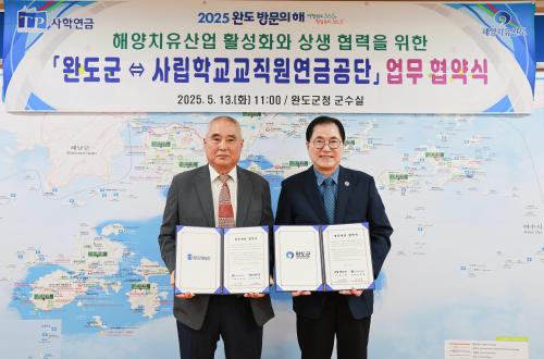 [½Åµ¿¾Æ¹æ¼Û=À̺´½Ä±âÀÚ] ¿Ïµµ±º(±º¼ö ½Å¿ìö)ÀÌ »ç¸³Çб³±³Á÷¿ø¿¬±Ý°ø´Ü(ÀÌ»çÀå ¼ÛÇÏÁß, ÀÌÇÏ »çÇבּÝ)°ú ¼ÕÀ» Àâ°í ÇØ¾çÄ¡À¯»ê¾÷ Ȱ¼ºÈ­ ¹× »çÇп¬±Ý ȸ¿ø¡¤°¡Á·ÀÇ º¹Áö ÁõÁø Áö¿øÀ» À§ÇÑ ¾÷¹« Çù¾àÀ» ü°áÇß´Ù.