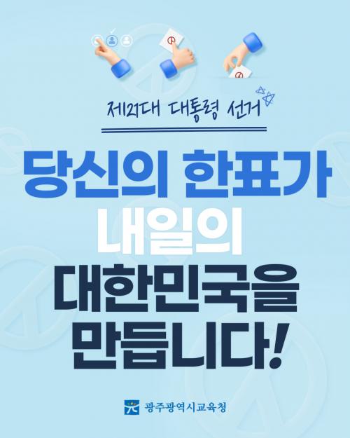 ½Ã±³À°Ã»Àº 22ÀϺÎÅÍ °ø½Ä ºí·Î±×, ÀνºÅ¸±×·¥ µî ´Ù¾çÇÑ SNS ä³ÎÀ» ÅëÇØ ÅõÇ¥ µ¶·Á È«º¸È°µ¿¿¡ µé¾î°¬´Ù. ƯÈ÷ ¡®´ç½ÅÀÇ ÇÑ Ç¥°¡ ³»ÀÏÀÇ ´ëÇѹα¹À» ¸¸µì´Ï´Ù!¡¯¶ó´Â ¹®±¸¸¦ ÅëÇØ Á¤Ä¡Âü¿©ÀÇ Á߿伺À» ºÎ°¢Çß´Ù.