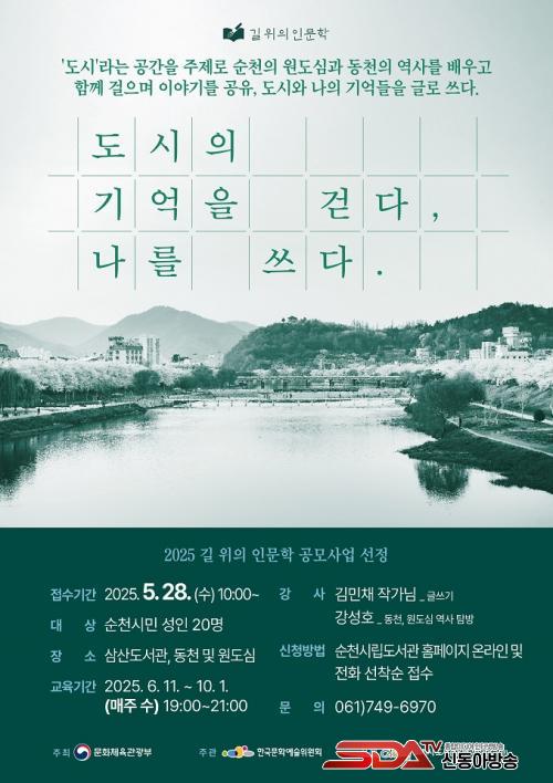[½Åµ¿¾Æ¹æ¼Û ¼øÃµ=±è¿ëÈÆ ±âÀÚ] ¼øÃµ½Ã(½ÃÀå ³ë°ü±Ô)´Â ¹®È­Ã¼À°°ü±¤ºÎ°¡ ÁÖÃÖÇϰí Çѱ¹¹®È­¿¹¼úÀ§¿øÈ¸°¡ ÁÖ°üÇÏ´Â ¡®2025³â ±æ À§ÀÇ Àι®ÇС¯ °ø¸ð»ç¾÷¿¡ ¼±Á¤µÇ¾î, ޹æ, °­¿¬, ±Û¾²±â µîÀ» ³»¿ëÀ¸·Î ÇÏ´Â º¹ÇÕÇü Àι®ÇÐ °­Á ¡¸µµ½ÃÀÇ ±â¾ïÀ» °È´Ù, ³ª¸¦ ¾²´Ù¡¹¸¦ ¿À´Â 6¿ùºÎÅÍ ¼øÃµ½Ã¸³»ï»êµµ¼­°ü¿¡¼­ ¿î¿µÇÑ´Ù°í ¹àÇû´Ù.