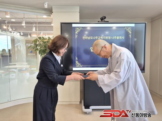 [½Åµ¿¾Æ¹æ¼Û Àü³²³ªÁÖ=À̽ŵ¿±âÀÚ] Àü¶ó³²µµ³ªÁÖ±³À°Áö¿øÃ»Àº 6¿ù 5ÀÏ(¸ñ) ¿ÀÀü 11½Ã, ³ªÁÖºÒȸ»ç¿Í ÇÔ²² ÀüÅë»ê»ç¸¦ ±â¹ÝÀ¸·Î ÇÑ Àμº±³À° ¹× Á¤¼ ȸº¹ Áö¿øÀ» À§ÇÑ ¾÷¹«Çù¾à(MOU)¸¦ ü°áÇÏ¿´´Ù.