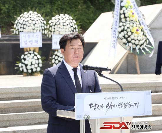 ÀÓº´Åà ½ÃÀåÀº Ãß³ä»ç¸¦ ÅëÇØ ¡°Á¶±¹À» À§ÇØ °í±ÍÇÑ »ý¸íÀ» ¹ÙÄ¡½Å ¼ø±¹¼±¿°ú È£±¹¿µ·Éµé¿¡ ´ëÇÑ ±íÀº Ã߸ð¿Í °¨»çÀÇ ¸¶À½À» ÀüÇÑ´Ù. ±× ¼þ°íÇÑ Çå½ÅÀº °áÄÚ ÀØÇô¼´Â ¾È µÇ¸ç ¿ì¸® °¡½¿ ¼Ó¿¡ ±æÀÌ ³²¾Æ¾ß ÇÑ´Ù¡±¶ó°í ¸»Çß´Ù. ÀÌ¾î ¡°½Ã´Â ±¹°¡¸¦ À§ÇØ Çå½ÅÇÑ ºÐµé°ú ±× °¡Á·µéÀÌ Á¸Áß¹Þ°í ¿¹¿ì¹Þ´Â »çȸ¸¦ ¸¸µé±â À§ÇØ Ã¥ÀÓ°ú ¿ªÇÒÀ» ´ÙÇϰڴ١±¶ó°í ¹àÇû´Ù.