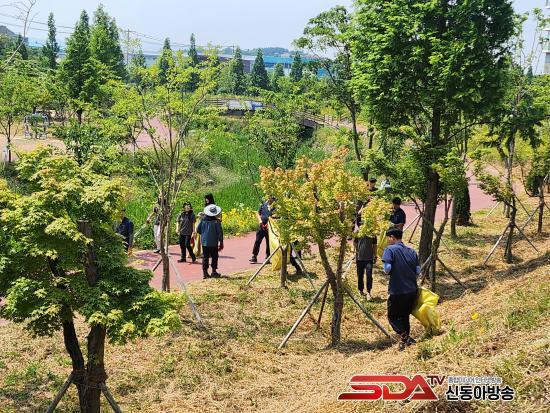 À̳¯ Çà»ç¿¡ Âü¿©ÇÑ Á÷¿ø 15¿© ¸íÀº ÇÏõ¿¡ ¹æÄ¡µÈ Æóºñ´Ò, ÇÃ¶ó½ºÆ½º´°ú °¢Á¾ ¾²·¹±â µî ¿À¿°¹°ÁúÀ» ¼ö°ÅÇϰí, ÇÏõ ÁÖº¯ ÀâÃʸ¦ Á¦°ÅÇÏ´Â µî ±¸½½¶¡À» È긮¸ç ȯ°æÁ¤ºñ¿¡ Èû½è´Ù.