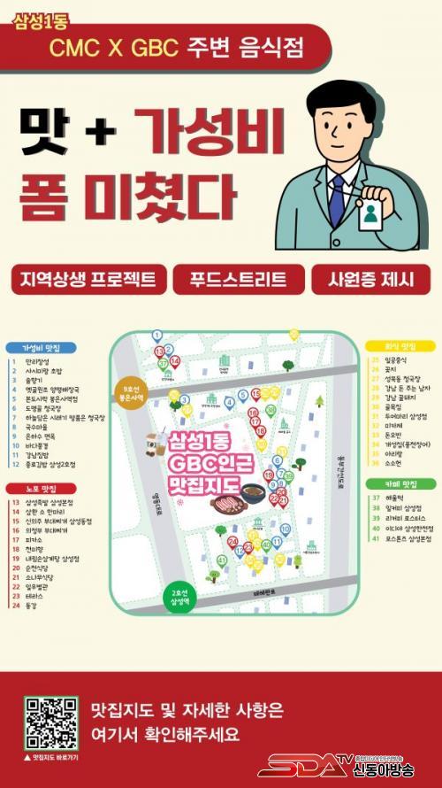 ÀÌ¿¡ ±¸´Â Áö³ 10ÀÏ ¡®»ï¼º1µ¿ CMC Á÷¿ø°ú GBC ÀÏ´ë À½½ÄÁ¡ ¸ÀÀÖ´Â µ¿Ç࡯ ¹ß´ë½ÄÀ» °³ÃÖÇÏ°í º»°ÝÀûÀÎ Áö¿ª »ó»ý ÇÁ·ÎÁ§Æ®¿¡ µ¹ÀÔÇß´Ù. À½½ÄÁ¡ 41°÷À» Å׸¶º°(°¡¼ººñ¡¤È¸½Ä¡¤³ëÆ÷¡¤Ä«Æä ¸ÀÁý)·Î ºÐ·ùÇÑ ¡®¸ÀÁý Áöµµ¡¯¸¦ Á¦ÀÛÇϰí, QRÄÚµå ¸µÅ©¸¦ ÅëÇØ CMC ¼Ò¼Ó 16°³ ±â¾÷°ú Çù·Â»ç ÃÑ 9õ¿© ¸í¿¡°Ô ¾È³»ÇÔÀ¸·Î½á À½½ÄÁ¡ ¹æ¹®À» À¯µµÇÒ °èȹÀÌ´Ù. ÇØ´ç È«º¸¹°Àº ±â¾÷ ³»ºÎ¸Á°ú ¿¤¸®º£ÀÌÅÍ Àü±¤ÆÇ µî ´Ù¾çÇÑ »ç³» È«º¸ ä³ÎÀ» ÅëÇØ È®»êµÈ´Ù. À½½ÄÁ¡Àº ÀÚüÀûÀ¸·Î ¸ÂÃãÇü ÇÒÀÎ, ¼ºñ½º À̺¥Æ® Á¦°ø µîÀ» ÅëÇØ °íÁ¤ ¼ö¿ä¸¦ È®º¸Çϰڴٴ °èȹÀÌ´Ù.