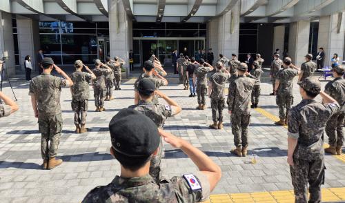 À̹ø Åõ¾î´Â ³ª¶ó¸¦ ÁöŰ´Â ÀþÀº À庴µé¿¡°Ô °¨»ç¸¦ ÀüÇϰí ÀüºÏ°úÀÇ Áö¼ÓÀû Àο¬À» À̾±â À§ÇÑ Çà»ç·Î, 6¿ù 5Àϰú 10ÀÏ µÎ Â÷·Ê¿¡ °ÉÃÄ ÃÑ 80¿© ¸íÀÇ Å¸Áö¿ª Ãâ½Å ¸ð¹ü À庴ÀÌ Âü¿©Çß´Ù.