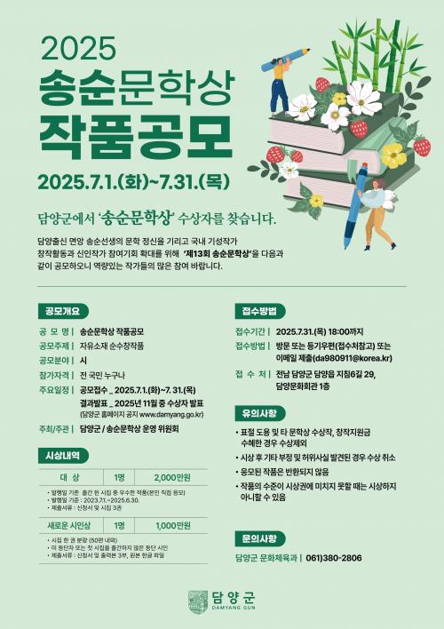 [½Åµ¿¾Æ¹æ¼Û=À̺´½Ä±âÀÚ] ´ã¾ç±ºÀÌ ¿À´Â 7¿ù 1ÀϺÎÅÍ ¡®Á¦13ȸ ¼Û¼ø¹®ÇÐ»ó¡¯ ÀÛǰ Á¢¼ö¸¦ ½ÃÀÛÇÑ´Ù.
