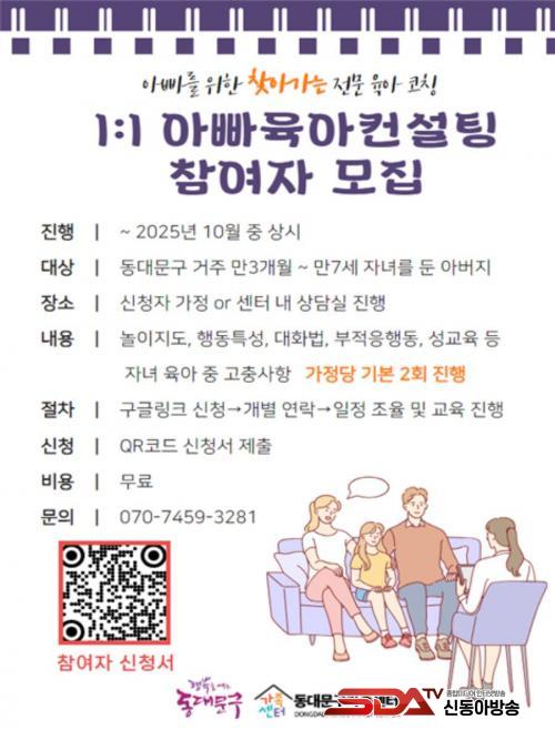À̹ø »ç¾÷Àº °ü³»¿¡ °ÅÁÖÇÏ´Â 3°³¿ù~7¼¼ Àڳฦ µÐ ¾Æ¹öÁö¸¦ ´ë»óÀ¸·Î, ½Åû °¡Á¤ ¶Ç´Â µ¿´ë¹®±¸°¡Á·¼¾ÅÍ »ó´ã½Ç¿¡¼ ÀÚ³àÀÇ ¹ß´Þ ´Ü°è¿Í °³º° Ư¼ºÀ» °í·ÁÇÑ ¸ÂÃãÇü ÄÁ¼³ÆÃÀ» Á¦°øÇÑ´Ù. ÁÖ¿ä ³»¿ëÀº ³îÀÌÁöµµ, ´ëȹý, Çൿ Ư¼º, ºÎÀûÀÀ Çൿ, ¼º±³À° µîÀ¸·Î ±¸¼ºµÇ¸ç °¡Á¤ ´ç 2ȸ(ȸ´ç 2½Ã°£) ±âº» ÄÁ¼³ÆÃÀÌ ÁøÇàµÈ´Ù.