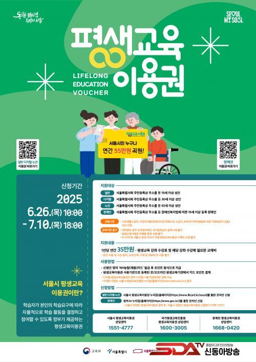 ½ÅûÀº ¿À´Â 6¿ù 26ÀÏ 10½ÃºÎÅÍ 7¿ù 10ÀÏ 18½Ã±îÁö ¼¿ï½Ã Æò»ý±³À°ÀÌ¿ë±Ç ´©¸®Áý¿¡¼ ¿Â¶óÀÎÀ¸·Î °¡´ÉÇϸç, 65¼¼ ÀÌ»ó(1960³â 12¿ù 31ÀÏ Ãâ»ýÀÚ±îÁö) ¹× Àå¾ÖÀÎÀº ÁÖ¼ÒÁö °üÇÒ µ¿Áֹμ¾ÅÍ¿¡¼µµ ÇöÀå Á¢¼öÇÒ ¼ö ÀÖ´Ù.