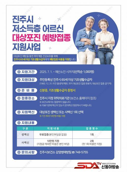 [½Åµ¿¾Æ¹æ¼Û °æ³²ÁøÁÖ=³²±Ã¿µ±â±âÀÚ] ÁøÁֽô ¿À´Â 7¿ùºÎÅÍ 65¼¼ ÀÌ»ó Ãë¾à°èÃþ(±âÃÊ»ýȰ¼ö±ÞÀÚ)À» ´ë»óÀ¸·Î ¡®´ë»óÆ÷Áø ¿¹¹æÁ¢Á¾ Áö¿ø»ç¾÷¡¯À» ½Ç½ÃÇÑ´Ù°í ¹àÇû´Ù.