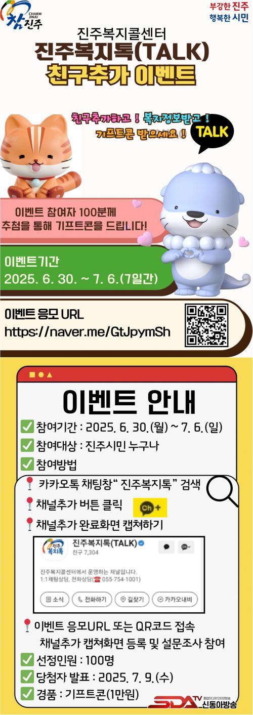 À̺¥Æ® ÀÀ¸ð ¹æ¹ýÀº ÁøÁÖº¹ÁöÅå ä³Î¿¡ Ä£±¸¸¦ Ãß°¡ÇÑ µÚ, ä³Î Ãß°¡ ÀÎÁõ»çÁøÀ» ÀÀ¸ð ÆäÀÌÁö¿¡¼ µî·ÏÇÏ°í ¼³¹®À» ÀÛ¼ºÇÏ´Â ¹æ½ÄÀ¸·Î Âü¿©ÇÒ ¼ö ÀÖ´Ù. À̺¥Æ®¿¡ Âü¿©ÇÑ ½Ã¹Îµé Áß ¹«ÀÛÀ§ Ãß÷À» ÅëÇØ ±âÇÁƼÄÜ(1¸¸ ¿ø »ó´ç)À» ÁõÁ¤ÇÒ ¿¹Á¤ÀÌ¸ç ´ç÷ÀÚ´Â 7¿ù 9ÀÏ ¹ßÇ¥ÇÑ´Ù.