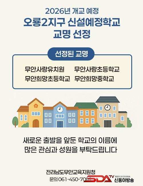 ¿À·æ2Áö±¸ ½Å¼³Çб³ ±³¸í¼±Á¤À§¿øÈ¸´Â Áö¿ª¼ºÀ» ³ªÅ¸³¾ ¼ö ÀÖ°í ºÎ¸£±â ½¬¿î Çб³¸íÀ» ¼±Á¤ÇßÀ¸¸ç, ÇлýµéÀÌ »ç¶û°ú Èñ¸ÁÀÌ ³ÑÄ¡´Â Çб³ »ýȰÀ» ÇßÀ¸¸é ÇÏ´Â ¹Ù¶÷À» ´ã¾Ò´Ù°í ¹àÇû´Ù. ¼±Á¤µÈ ±³¸íÀº Àü¶ó³²µµ±³À°Ã» µµ¸³Çб³ ¼³Ä¡Á¶·Ê °³Á¤¾ÈÀÌ ÀǰáµÇ¸é ÃÖÁ¾ È®Á¤µÉ ¿¹Á¤ÀÌ´Ù.