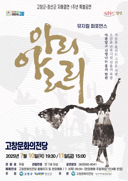 À̹ø °ø¿¬Àº °íⱺ°ú Á¤¼±±ºÀÇ ÀڸŰῬ 1Áֳ⠱â³äÀ¸·Î ÁøÇàµÇ¸ç °íⱺ, Á¤¼±±ºÀÌ ÁÖÃÖÇÏ°í °íâ¹®ÈÀÇÀü´ç, Á¤¼±¾Æ¸®¶û¹®ÈÀç´ÜÀÌ ÁÖ°üÇÑ´Ù.