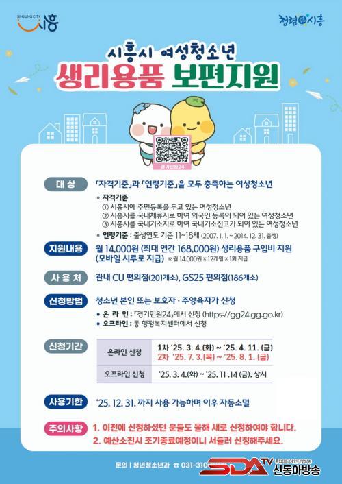 [½Åµ¿¾Æ¹æ¼Û ½ÃÈï½Ã=À̽ŵ¿±âÀÚ] ½ÃÈï½Ã´Â ¡®2025³âµµ ½ÃÈï½Ã ¿©¼ºÃ»¼Ò³â »ý¸®¿ëǰ º¸ÆíÁö¿ø»ç¾÷¡¯ÀÇ ¿Â¶óÀÎ ½ÅûÀ» 8¿ù 1ÀϱîÁö ¹Þ´Â´Ù°í ¹àÇû´Ù.