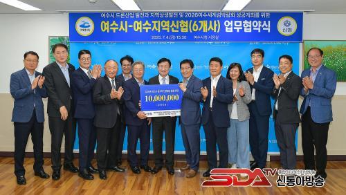 Çù¾à¿¡ µû¶ó Áö¿ª ½ÅÇù 6°³ »ç(¿©¼öÁ¦ÀϽÅÇù¡¤¿©¼öÁß¾Ó½ÅÇù¡¤¿©¼öÂüÁ¶Àº½ÅÇù¡¤½ÖºÀ½ÅÇù¡¤¿©¼ö½ÅÇù¡¤¿©Ãµ½ÅÇù)´Â ÇâÈÄ 3³â°£ ¼¶ Áö¿ª µå·Ð ¹è¼Û»ç¾÷À» ÈÄ¿øÇÏ¸ç ¿ÃÇØ´Â 1,000¸¸ ¿ø »ó´çÀÇ ¹°Ç°À» ÈÄ¿øÇϱâ·Î ¾à¼ÓÇß´Ù.