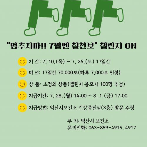 À̹ø 7¿ù °È±â 縰Áö´Â ¿À´Â 26ÀϱîÁö ÇÏ·ç 7,000º¸¾¿ ÃÑ ¸ñÇ¥ °ÉÀ½ 7¸¸ º¸¸¦ ´Þ¼ºÇÏ¸é µÈ´Ù. ¸ñÇ¥ °ÉÀ½À» ´Þ¼ºÇÑ Âü¿©ÀÚ Áß ¹«ÀÛÀ§ Ãß÷À» ÅëÇØ 100¸íÀ» ¼±¹ßÇÏ°í °æÇ°À» Àü´ÞÇÒ ¿¹Á¤ÀÌ´Ù.