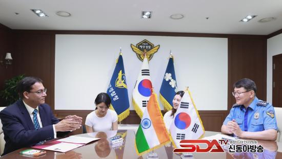 7¿ù 11ÀÏ ÁÖÇÑ Àεµ ´ë»ç°ü¿¡¼­ ¾Æ¹Ô Äí¸¶¸£ ´ë»ç°¡ ÇØ¾ç°æÂûûÀ» ¹æ¹®ÇÏ¿© ±è¿ëÁø ÇØ¾ç°æÂûûÀå°ú ÇÔ²² ¾ç±¹ ÇØ¾ç Çù·Â ¹æ¾È ³íÀÇ ÇÏ´Â ¶æ ±íÀº ÀÚ¸®¸¦ ¸¶·ÃÇÏ¿´´Ù.