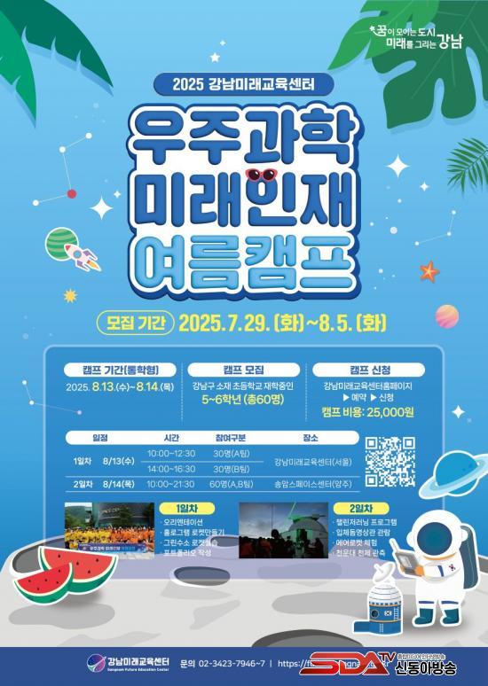 °³²¹Ì·¡±³À°¼¾ÅÍ´Â ¿À´Â 8¿ù 13ÀϺÎÅÍ 14ÀϱîÁö ÃʵîÇб³ 5~6Çгâ 60¸íÀ» ´ë»óÀ¸·Î ºñ¼÷¹ÚÇü ¡®¿ìÁÖ°úÇÐ ¹Ì·¡ÀÎÀç ¿©¸§Ä·ÇÁ¡¯¸¦ ¿¬´Ù. Âü°¡ÀÚµéÀº °æ±â ¾çÁÖÀÇ ¼Û¾Ï½ºÆäÀ̽º¼¾Å͸¦ ¹æ¹®ÇØ º°ÀÚ¸®¸¦ °üÃøÇϰí õ¹® Àü¹®°¡ÀÇ °¿¬À» µè´Â´Ù. ½ÅûÀº 7¿ù 29ÀÏ ¿ÀÀü 10½ÃºÎÅÍ 8¿ù 5ÀϱîÁö °³²¹Ì·¡±³À°¼¾ÅÍ È¨ÆäÀÌÁö(future.gangnam.go.kr)¿¡¼ ÇÒ ¼ö ÀÖ´Ù.